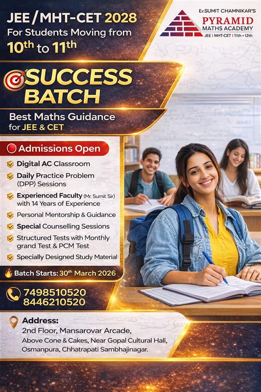 Trust, this is the best institute for preparation of CET,JEE and boards in Aurangabad. Sumit sir is just not a teacher but he is the best mentor, helps in literally any problem in maths. I feel lucky to find this institute. Only institute which focuses on students’ learning from BASICS (which is must in any competitive exam).